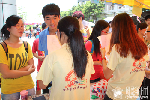 5月24日,食品学院阳光加油站在荷园门口摆摊宣传525心理健康日,各种激动小游戏、丝带蓝言、心理小知识大比拼让同学们乐在其中。