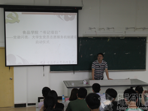 为积极响应学校的创新基层党建书记项目——《党徽闪亮,大学生党员志愿服务机制建设》活动,我院正式开展了大学生党员志愿服务项目。苏镇松副书记上台向预备党员和正式党员们介绍大学生党员志愿服务方案的具体实施情况。大学生党员开展志愿服务活动,是大学生党员践行党全心全意为人民服务宗旨的生动体现,这项活动分为五个内容:打造一个党员志愿服务平台、培育一批党员志愿服务特色项目、开展一周党员志愿服务活动、建设一批党员志愿服务阵地和形成一个党员志愿服务工作机制。食品学院在这份内容的基础上设想并搭建了19个项目平台,由我院的各大社团和组织联手负责,为党员的志愿服务提供了充足的机会。苏书记也提醒在座的党员,本次志愿服务将会进行系统的记录,结果直接与党员评优挂钩,故党员们应该积极表现,做一名真正为人民服务的好党员。