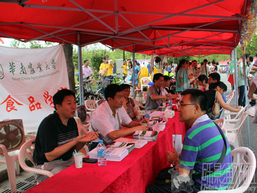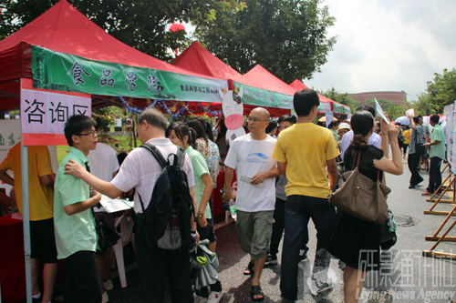 苏镇松书记表示:“今年和往年的形式差不多,摆摊旨在更好地宣传,让参观者更了解食品学院。”