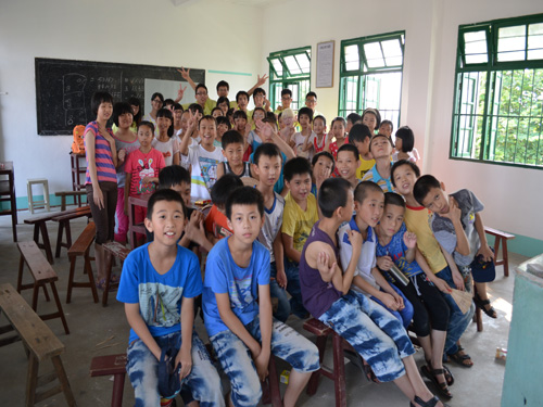 启明星三下乡支教团队的成员迅速与小学生们打成一片。下课时,小学生们热情地与志愿者们挥手回家。