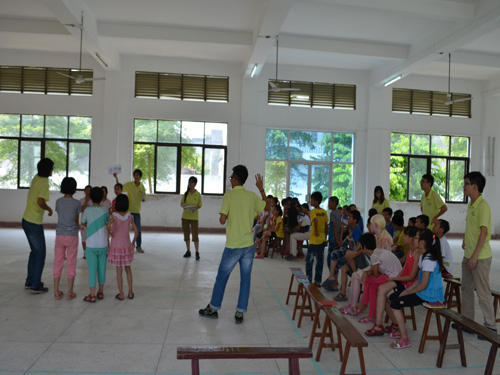 开学典礼上,在邀请庄校长作开学典礼致辞后,启明星团队全体成员以表演小品及游戏互动的形式与小学生进行亲密的互动,迅速拉近了与当地小学生的心理距离。