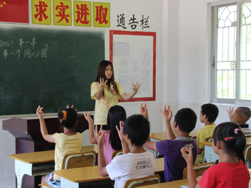 体育课似乎永远是最受欢迎的。体育课前15分钟是教手语的,因为孩子们都会很大声地跟唱小虎队的《爱》,还很认真地比划。授课的李尚杨老师表示:“我教手语的积极性越来越高了。”
