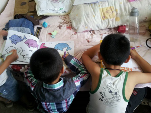 考察五星乡的五星小学后,队伍在午饭过后很快就在宿舍迎来了一大批热切求知的小学生。队员们立即进行分班教学,其中有针对高年级的数学作出的功课辅导,也有针对低年级的作画、折纸等方面作出的教学辅导。