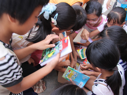 在下午第三节课的时候,老师把从广州带过来的书籍分发给了小朋友。小朋友们争先恐后的去挑选着自己喜欢的有兴趣的书籍。书籍有故事书,科学书,漫画书等。看着小朋友们知识渴求的眼神,和在那里一动也不动的看着书的神态。三下乡的意义在这里,体现的淋漓尽致。