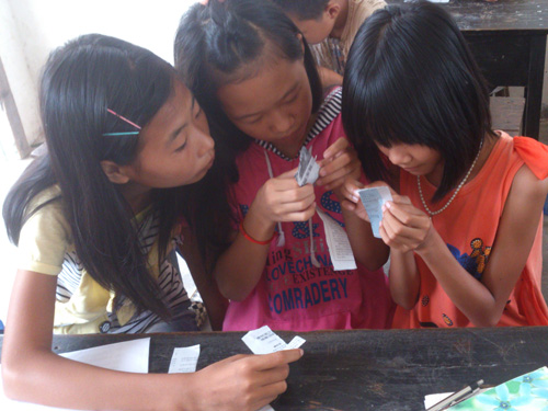 上午8:00,第一节“趣味英语”课,秀芬姐姐(陈秀芳)和柯柯姐姐(杜柯霖)教小朋友们国际音标,纠正小朋友们英语的发音问题。据了解,北拉小学的英语课没有固定的任课老师,一般都是由语文、数学老师担任,并且老师也是一边靠自己慢慢学习英语来教给学生们,以致于学生们的英语水平偏下,发音不标准,所接触英语情景对话内容缺乏。