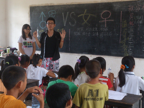 小朋友们非常认真地跟着秀芬姐姐跟柯柯姐姐一起学习标准的国际音标,大家大声地朗读着,迸发出一个正在成长的少年少女青春激情。课后,一群同学围着秀芬姐姐,请教着秀芬姐姐发音问题,有的同学还拿了暑假的英语作业请教秀芬姐姐。