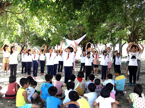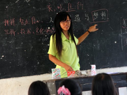 在七天的义教活动中,队伍给孩子们精心准备了“人格塑造与梦想”、“伟人与世界”、“阳光体育”和“手语”等一系列生动有趣的课,通过一门门课程,他们指引孩子们认识自己,认识家乡,认识祖国和世界,让他们了解中国梦,激励他们勇敢追寻自己的梦想,并将自己的梦想和“中国梦”结合起来,同时队伍帮助当地小学建立了一个小小图书角,希望借助图书的力量放飞每一个孩子的中国梦。下乡最后一天和小朋友们一同表演的文艺汇演也得到了村民的欢迎和好评。