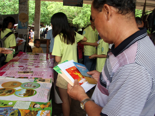 队伍去到当地人流量最大的集市进行以“十八大春风进社区,食品生态知识促健康”为主题的宣传活动。整个宣传活动以“十八大”为主基调,针对食品、农村环保、最新惠民政策等多方面进行宣传。队员们通过张贴的海报和派发图文并茂的宣传册向村民介绍了食品安全卫生知识,同时也将生态文明建设的精神传递给当地村民。