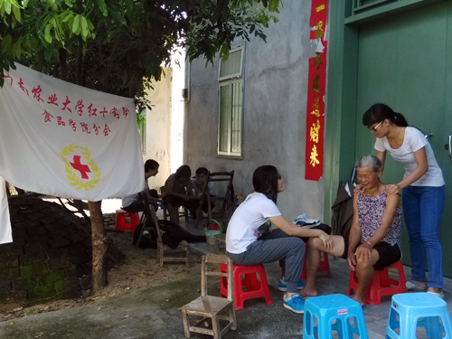 向日葵小队成员都是来自华南农业大学食品学院红十字会的成员,他们将在红会学到的专业按摩知识与技术运用到实际当中,在当地开展了暖流服务。暖流服务是指成员们为村民们进行了手脚及颈部按摩,让他们舒展筋络。村民们纷纷称赞队员们专业的按摩技术,缓解了他们常年劳累的身体,并表示希望可以多开展类似的服务活动。