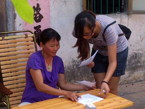 向日葵小队对北拉村当地居民进行了主题为“草潭镇环境治理”的走访调查,通过采访交谈的方式了解当地环境污染以及民众们的呼声,为环境保护讲座的开展提供了数据依据。