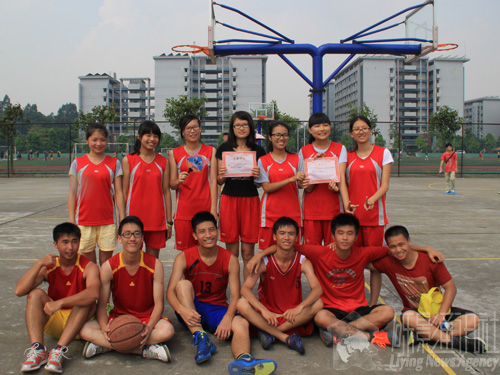 炎阳炙人,但各队员很快进入状态,冠军争夺队伍蓝队首先领先,红队不甘示弱,急追直上,两队实力相当,但上半场以红队主力一个漂亮的三分球,领先蓝队2分结束。队员们挥汗如雨,啦啦队也热情高涨,呐喊助威,气氛活跃。下半场双方比分依旧不相上下,队员们你来我往,你争我夺,在最后1分钟红队以罚球得分追上蓝队,赢得5分钟加时。两队表现可圈可点,在加时赛中,红队最终领先5分,以37:32赢得新生杯篮球赛冠军头衔,蓝队成为亚军。