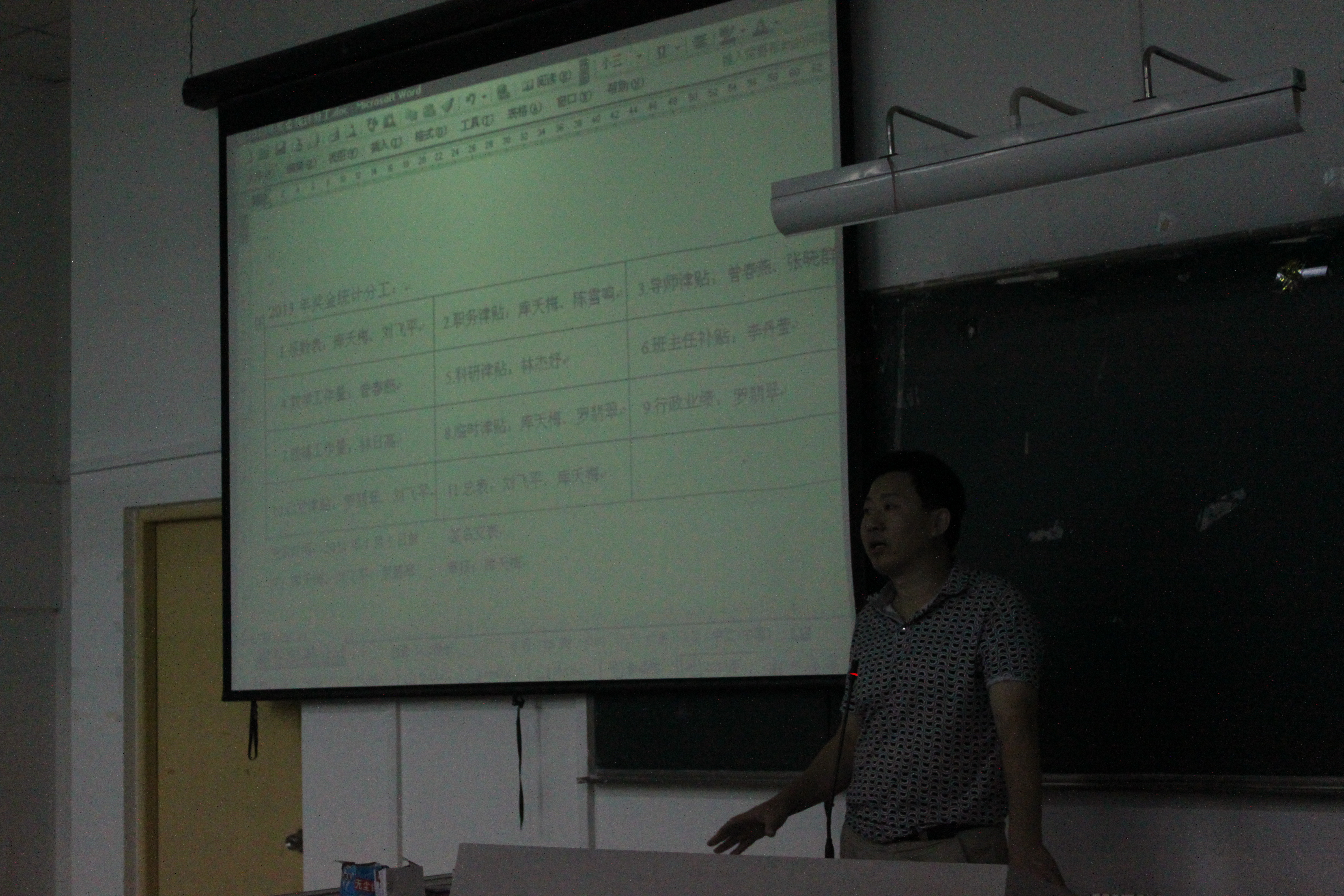 随后,副院长向红就分管的教学工作进行了讲话,他谈到,全体教师要认真做好科研教学工作,尤其今年是学校课程建设年,教学评估工作要求更加严格。同时,学校已公开A系列的课程征集,希望有时间的老师积极开课。