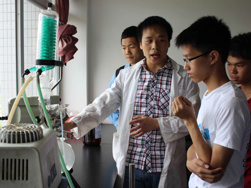 在科联人员的带领下,同学们前往位于萝岗区的粤微公司本部。到达工厂后,向导带领大家进入会议室观看粤微公司的介绍视频,向同学们介绍了企业历史与企业所取得的多项科研成果与成就。产品介绍馆中,一棵巨大的野生灵芝吸引了大家的目光,大家纷纷驻足,拍照留念。成功的经营离不开过硬的技术,实验室内一系列的精密仪器让大家兴奋不已,向导热心地为同学们讲解各种疑问,充满好奇心的大家也利用仪器实践一番。