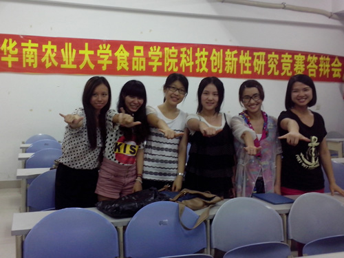 10月30-31日,中国食品科学技术学会第十届年会暨第七届中美食品业高层论坛在江苏省南京市召开。我校食品学院2010级晏子樱等学生参赛团队作品《“好菇娘”即食风味杏鲍菇片》喜获2013年度李锦记杯学生创新大赛三等奖。团队成员包括晏子樱、吕宝怡、欧婧、田于嘉、杨洋、杨媛、弓雪峰。