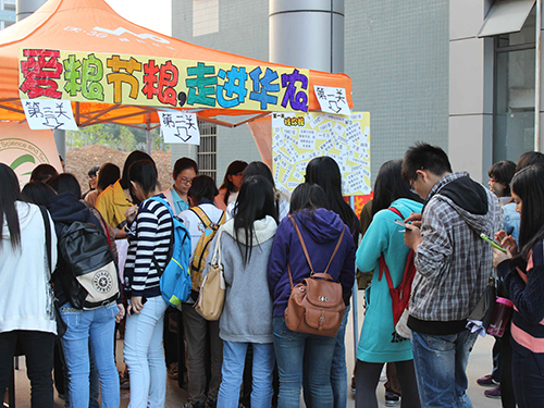 摊位前的同学络绎不绝,“爱粮节粮”活动作为普及节粮知识的有效方式,激发了同学们的参与热情,营造出了一种节约粮食的校园氛围。