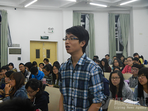 在自由提问环节中,同学们踊跃提问,张教授用自己幽默的语言化解了同学们抛来的一个个难题。本次党课在活跃的气氛下圆满结束。
