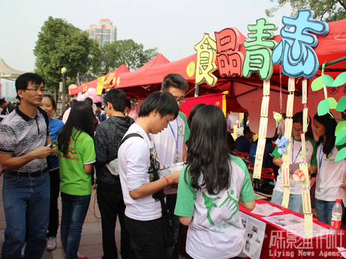 11月16日下午,第三届志愿服务广州交流会(简称“志交会”)项目终审摆摊宣传活动在太古仓顺利进行。食品学院青年志愿者服务队(简称“食品青志”)携手砾影通讯社就食品青志三个项目进行终审摆摊宣传。