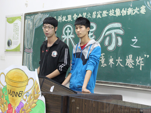 本次大赛由初赛和决赛组成,共有64支队伍参加,参选队伍在初赛中根据实验原料“薏米”,选取物质提取类、物质检验类、物质含量测定类、物质加工类及其他参赛者感兴趣的方面五种类型设计实验,撰写设计报告后进行答辩。进入决赛的10支队伍在23、24日白天提前完成实验制作过程,24日晚进行成果汇报。
