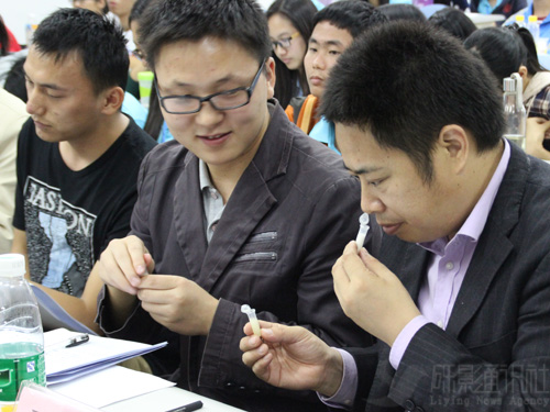 决赛当晚,选手们匠心独具,别出心裁,一个个搏人眼球的组名让大家惊叹不已:果宝特工、五梅一行天下、薏醉方休、薏想天开、薏见倾心、薏气相投、薏夫当关……各小组一一上台讲解自己的实验过程,薏米酸梅、薏米酱、薏米油润肤霜、薏米通等一个个富有创意的产品新鲜出炉,其中薏想天开队的作品除了制作出薏米酱和薏米茶包外,在产品的外包装上也花了心思,队员张同学介绍道:“我们有精心设计过我们小组产品的logo,因为考虑到这会提高我们产品的市场竞争力。”评委老师们的提问较多地侧重在同学们实验灵感的来源,为什么会想到制作这样的产品是他们比较关心的问题。另外,老师也提醒大家,确定实验项目的时候要考虑到材料利用的合理性,即该材料是否适合制作这样的产品;在混合产品方面,则可以多次实验来探究材料混合的最佳比例。