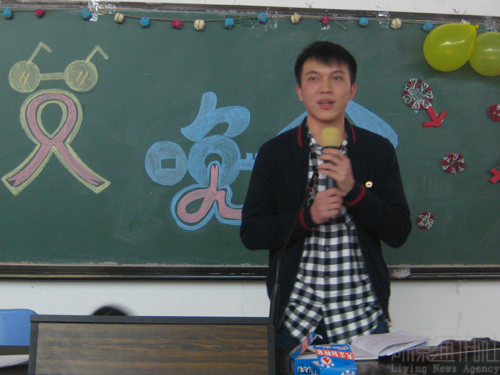 12月7日,食品学院红十字会、动物科学学院红十字会、生命科学学院红十字会、兽医学院红十字会联合举办的2013预防艾滋病宣传活动于第三教学楼212举行闭幕晚会,校红十字会和各学院分会代表应邀出席。