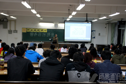 提前认识营养师需要怎样的社会营养知识,对于一名即将走向社会的食品学院学生很重要。12月7日晚,食品学院职业规划中心(简称“职规”)在第三教学楼212举办了本学期最后一场职业规划讲座——营养咨询讲座。本次讲座邀请到国家健康管理师、一级营养技师杨子逵教授为2011级食品学院学生进行讲解。