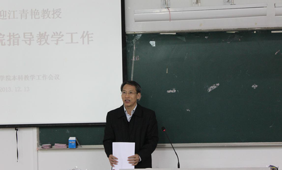 孙远明院长对江教授能在百忙中到我院教学工作给予的指导表示衷心感谢。要求全院教师学习江青艳教授,热爱教学、重视教学,以2013年评估工作为契机,不断深化教学改革与课程建设,使学院教学工作上一个新台阶。