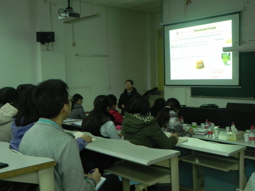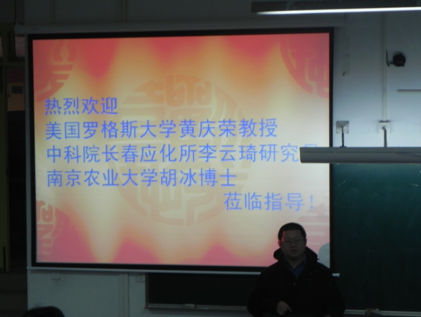 12月16日上午,现任美国罗格斯大学食品科学系终身教授、华南农业大学丁颖讲座教授的黄庆荣教授、中科院长春应化所李云琦研究员、南京农业大学钟山学者-学术新秀胡冰博士来访我院作报告。学院领导对黄教授的到来表示热烈欢迎,老师和学生们积极踊跃的参加学术交流会议。