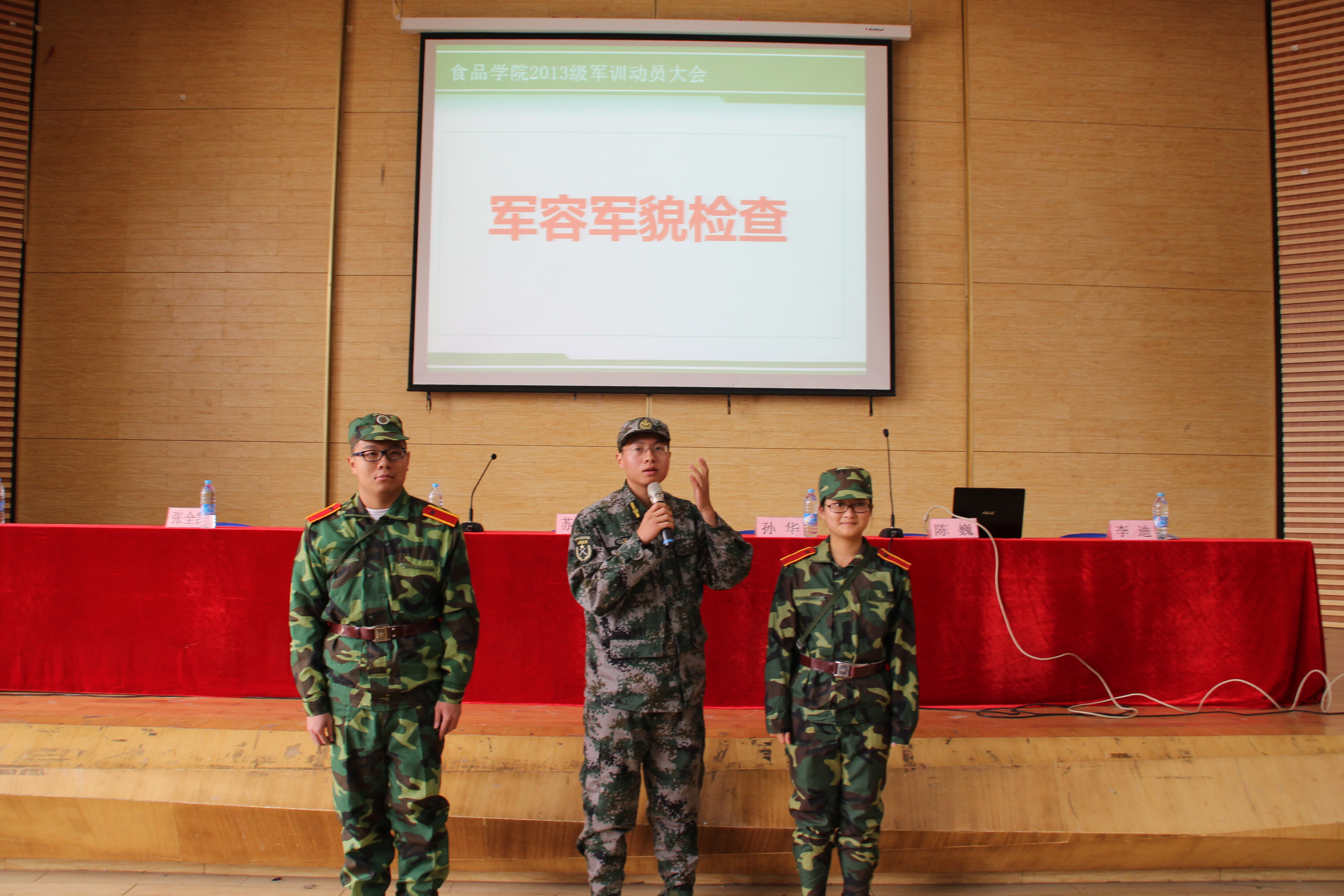 会上,党委副书记苏镇松对2013级新生的军训表现寄予厚望,并向军训学员提出了四点要求:一是吃苦耐劳,天气寒冷,军训的过程很苦,要锻炼出坚韧的毅力;二是遵守纪律,军训有相关的规章制度,大家要服从命令,以部队纪律严格要求自己;三是虚心学习,学习部队优良作风,杜绝拖拉现象;四是注意安全,军训过程中要根据自己的身体状况量力而行,不舒服要及时提出向上报告。