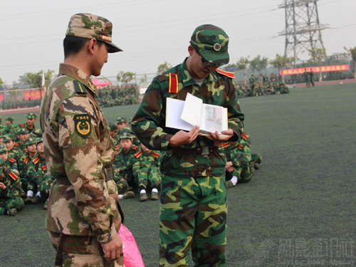 14天的朝夕相处,14天的欢歌笑语,短短两周学员不仅获得军事技术,还有那份难舍难分的情谊。11日,三团八营的10位副排长代表食品学院全体师生向教官送上爱心相册,相册承载着满满的回忆和学员真诚的心声。