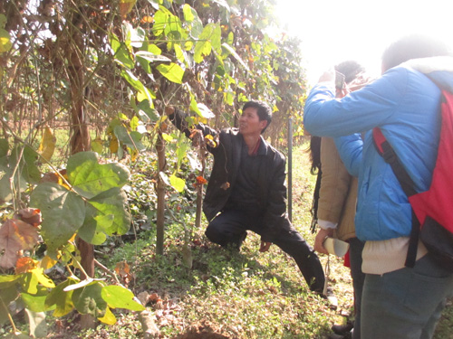 1月14日,佛山市高明合朝农业发展有限公司的负责人黄先生带领食品学院下乡队伍参观高明特产——合水粉葛的贮存仓库和种植田地。