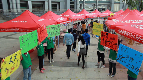 据悉,今年美食文化节将定于3月22日在东区运动场开展。为了让全校的同学更好的了解本届美食文化节,食品学院将于3月5日在各大饭堂门口摆摊宣传,并在3月7、8日于第五教学楼和第四教学楼分别举办两场宣讲会,全面展示第14届美食文化节的魅力并讲解摊位竞标的相关事宜。(文/食品学院砾影通讯社 陈思慧 图/艺术学院 宁杰文 黄泽典 )