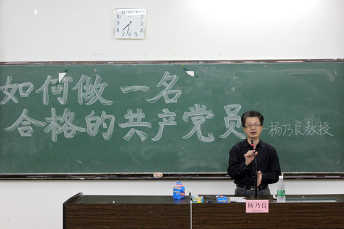 对于怎样成为一个合格的共产党员,杨教授提出了三点要求:端正入党动机,全心全意为人民服务;为他人作贡献,奉献是一件快乐的事情;能够正确面对党内腐败的现象。相信我党能处理好这些事情并从自身做起,不要坠入腐败的泥潭。