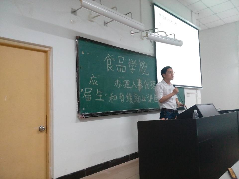 4月18日晚,食品学院2014届应届毕业生人事代理和暂缓就业相关知识讲座在食品学院院楼314顺利举行。辅导员鲍金勇老师、南方人才市场赵林鹏经理就毕业生人事代理及暂缓就业的相关问题与注意事项和毕业生们进行了分享和交流。