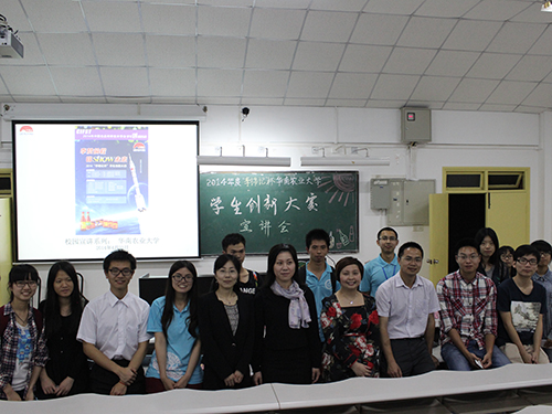 4月23晚,由中国食品科学技术学会与李锦记(中国)销售有限公司联合主办的“2014年度‘李锦记’杯学生创新大赛”华南农业大学宣讲会在食品学院院楼210举行。出席本次宣讲会的嘉宾有中国食品科学技术学会秘书处莫英杰女士,李锦记(中国)销售有限公司公关总监赖洁珊女士,工厂部江智先生,人力资源经理许滢心女士,以及食品学院院长孙远明教授和辅导员陈巍老师。