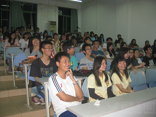 在主持人真实而感人的致词后,大会在给助班阳光员的视频中正式拉开帷幕,“其实虽然他们都说他们做得不好,但他们在我们心中是最好的。”一句感人的话语,迅速带动起了现场的气氛。食工一班视频中一句“且行且珍惜”同样发人深省,歌曲串烧《当》、《爱你一万年》、《明天会更好》更是让现场观众眼前一亮,喝彩声此起彼伏。食安三班的诗歌朗诵,“大手拉着小手,我们一起加油……”感情真挚,再现了与助班阳光员生活的点点滴滴,深情演绎了13级同学对助班阳光员的感恩与留恋。改编自歌曲《那些年》的食安二班班歌流露出淡淡的离愁别绪,引起了在座同学内心深处的共鸣,更有生工二班同学倾情演唱及现场吉他伴奏,一首改编版经典老歌《流星花园》引得台下掌声连连,不断把晚会推向高潮。部分班级的别出心裁的颁奖环节亦是诙谐幽默,阳光员苏小玲手拿着同学颁给她的生工二班最有耐心奖状,轻擦眼泪,“真的高兴能成为你们的阳光员,真的……”