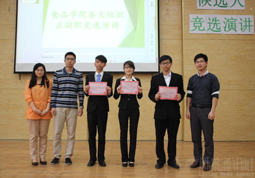 5月10日,食品学院2014届各组织正副职竞选演讲在真维斯活动中心顺利召开,食品学院辅导员田立、左浪和孙华出席演讲会。