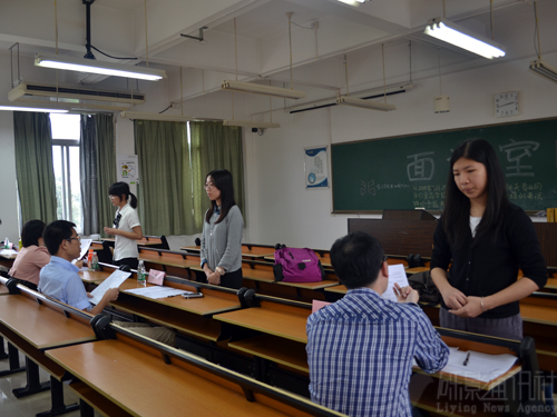 赛前,2011级食品科学与工程5班的郑穗阳说:“我希望能在这次大赛中感受一下面试的氛围。至于准备,我就借这次机会订做好了正装,同时也是为以后的正式面试作准备。”作为面试官的我院2008届毕业生卢姗师姐表示,这次来担任面试官是为了帮助师弟师妹,同时也为自己单位物色人才。