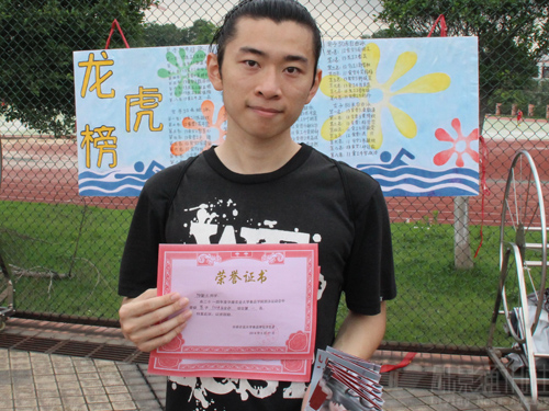 去年在校水运会中有优异表现的2012级食品质量与安全3班的周皓立也没让观众失望,取得男子50米自由泳和50米仰泳两项冠军的好成绩。