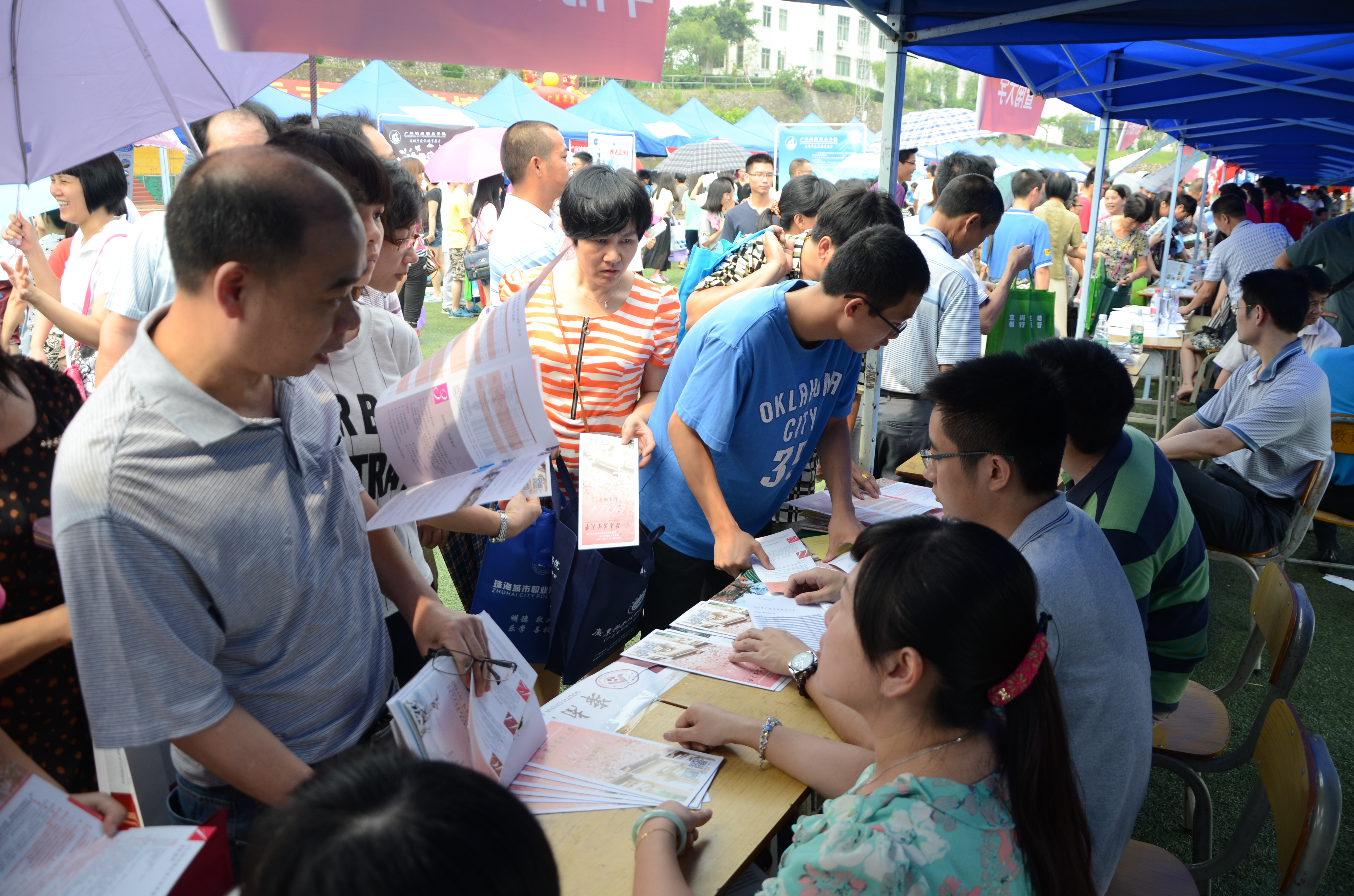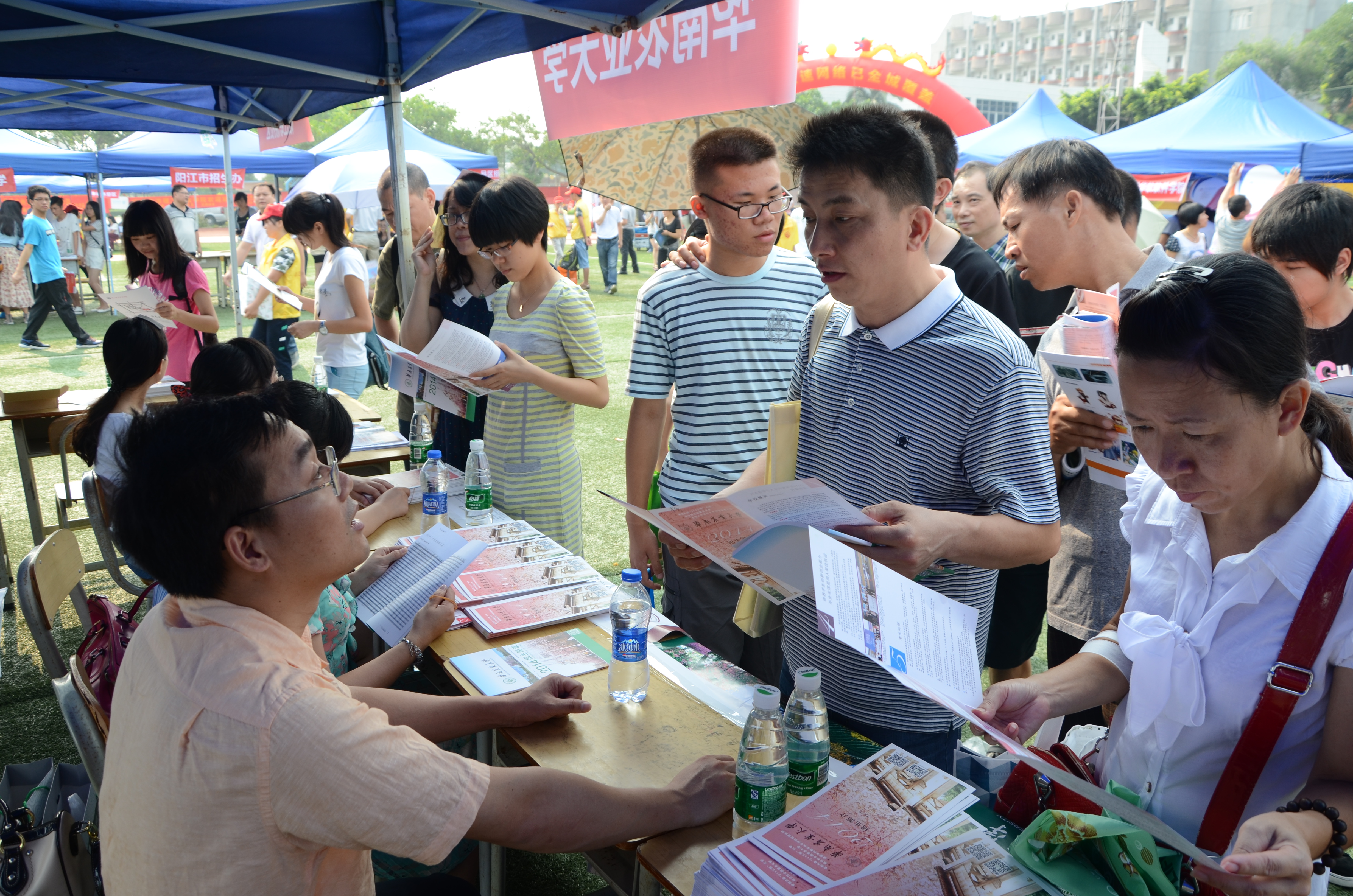 六月骄阳似火,咨询会现场火爆。早上8点,会场陆陆续续迎来前来咨询的考生及家长。我校咨询点深受欢迎,短短3小时就迎来上千人次咨询,1000多份招生资料很快派发完毕。在众多咨询中,我校历年考试录取线广受关注,有不少考生表示对我校慕名已久,但在专业选择方面比较困惑,工作人员针对不同咨询者提出的不同问题,再结合考生自身兴趣、能力、就业规划等情况为其进行耐心细致的解答。招生就业处李国章处长在接受《阳江日报》记者采访时表示,我校是农、工、文、理、经、管、法等多学科协调发展的综合性大学,办学历史悠久,校园环境优美,欢迎广大考生报考。