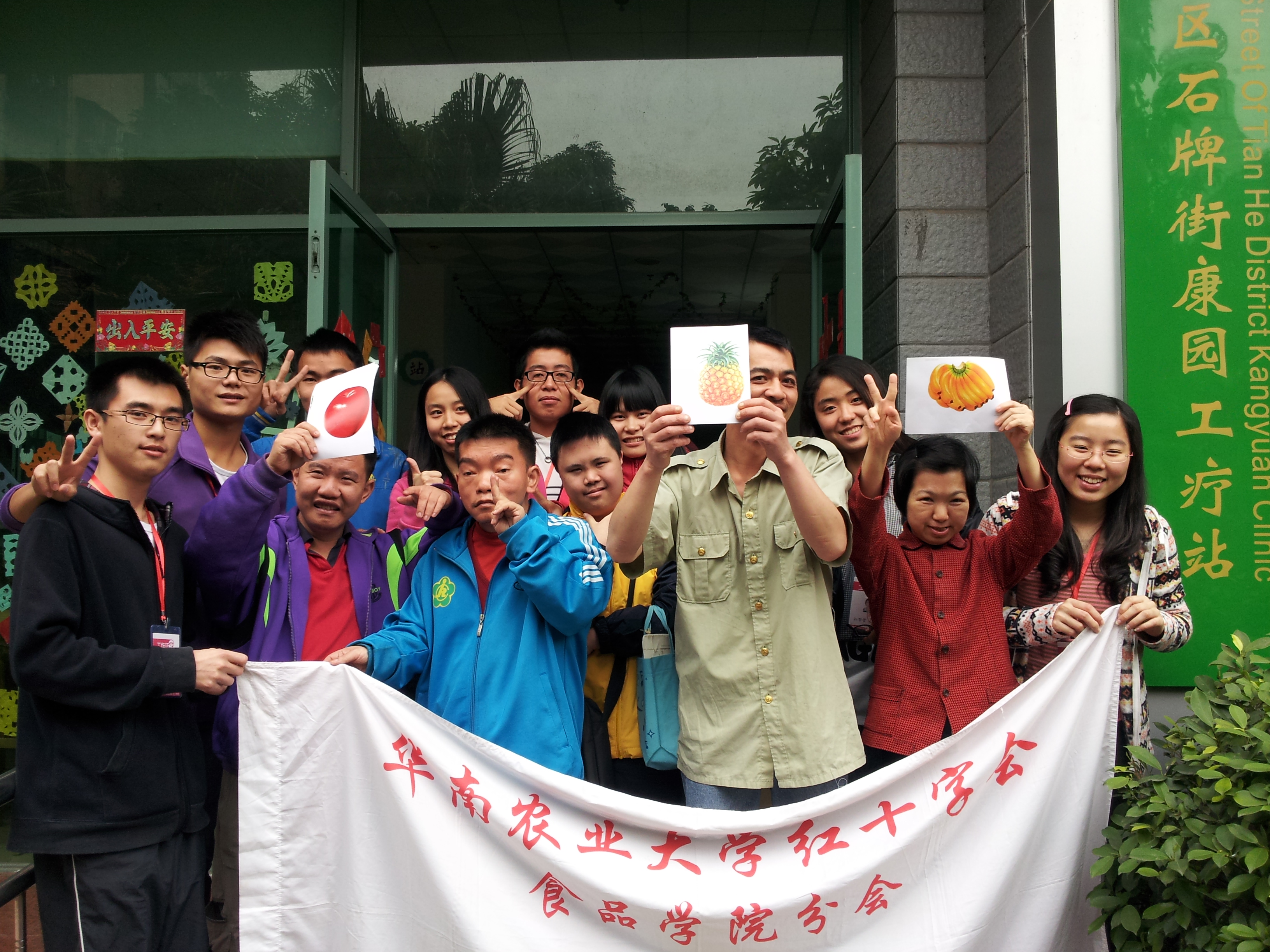 食品学院与石牌街工疗站的合作关系有着很深的渊源,从2009年至今,食品学院红会服务队的同学们坚持每周一次的探访活动,已组织了100余次志愿服务,参与者高达上千人次。2013年10月,食品学院党委副书记苏镇松率学院辅导员老师与石牌街工疗站签订华南农业大学“红满堂”大学生党员志愿服务协议,将该项服务作为学院“书记项目”的重点项目固定下来,形成大学生志愿服务的长效机制。多年的合作造就了志愿者与工友间深厚的感情,2014年3月14日,在食品学院的热情邀请下,石牌街工疗站16名工友来到华农,通过欣赏美丽的校园景色,体验有趣的益智游戏等感受到青春洋溢的大学氛围。