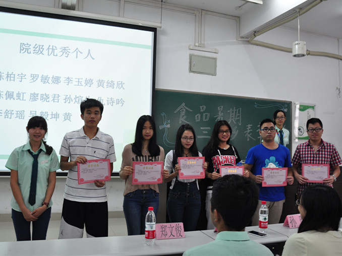 10月25日下午,2014-2015年食品学院暑期“三下乡”表彰大会顺利在5C302举行。团委书记孙华老师、团委副书记孙瑜、团委执行秘书长郑文俊,以及来自林学院、生命科学学院、外国语学院、园艺学院、资源环境学院的实践部干部代表出席了本次会议。