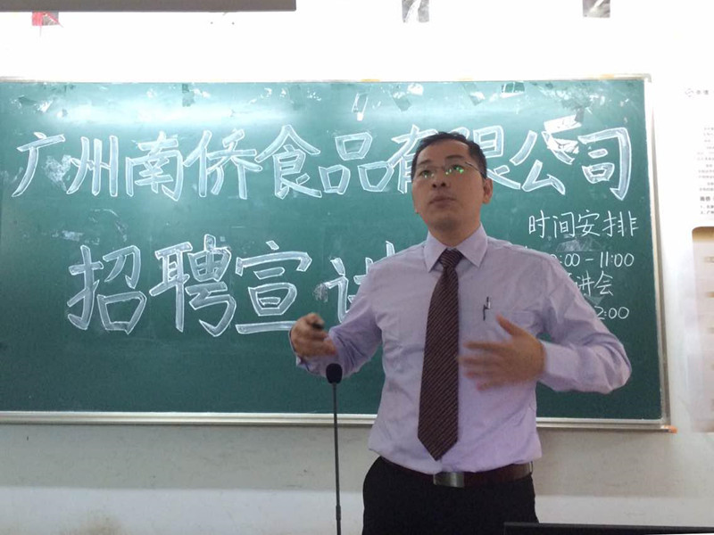 11月15日,广州南侨食品有限公司招聘宣讲会在食品学院院楼516顺利开展。为同学们宣讲的是来自南侨公司人力资源部的Dana。