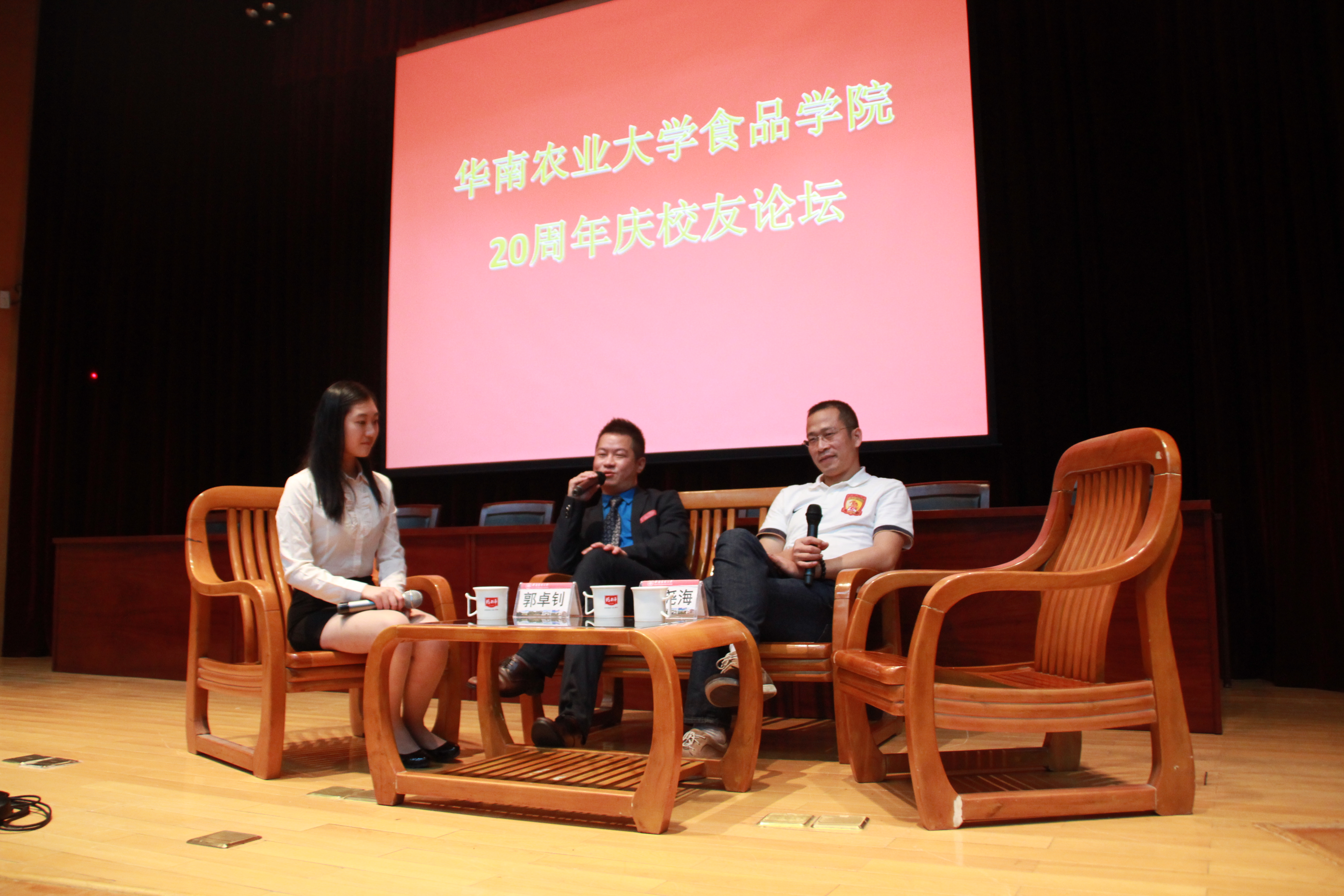 11月16日下午,我院二十周年庆论坛——创业与人生在图书馆报告厅顺利举行。本次论坛中,93级杰出校友广州萃取生物科技有限公司董事长陈尧海、广东康辉集团总裁郭卓钊分别就“大学生如何做事及创业”和“自信是生命的发动机”与学生探讨创业与人生的故事。