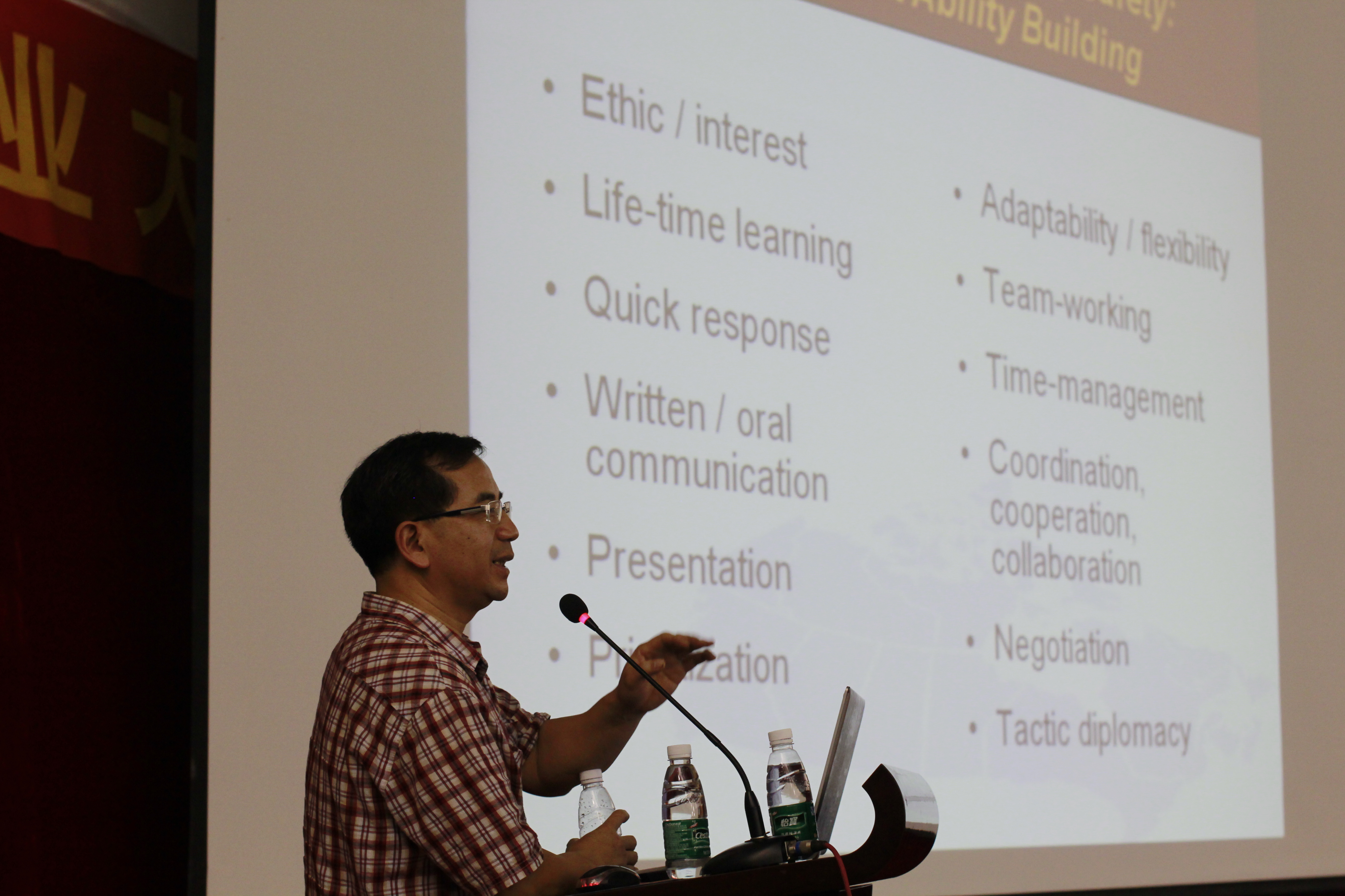 远从加拿大回来的高文通教授,是华农的校友,1982-1989年在华农完成了他的本科和硕士学位攻读,时隔十多年,回到母校,他表示感触良多。中国在这十几年里发展迅速,而华农的变化也非常大,他所从事的食品行业在华农也单独成立一个学院,到如今也已有20年的历史。以中国人民现十分关注的食品安全问题为方向,高教授为同学们讲解“全球性食品市场下的中国食品安全”。他提出,不同于前几十年中国面临的“粮食安全(数量型)”问题,现阶段面临的主要是“食品安全(质量型)”问题,在土壤、水和空气都被污染的情况下,对比食品安全管理方面比我国先进的加拿大,中国要抓制度,也要抓教育。