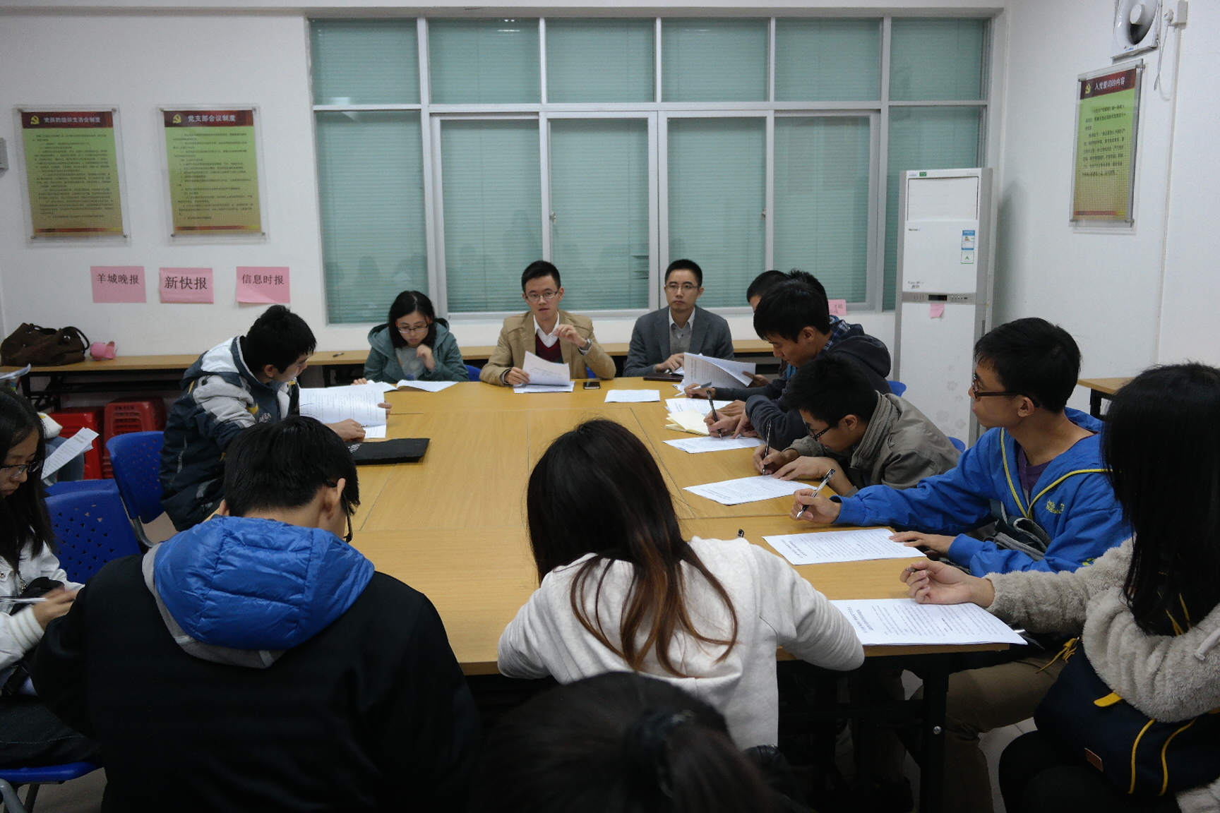 会上,李迪老师简单介绍了此次活动的内容,此次系列活动包括“我为自己代言”社区文明督导队、“我是社区的主人”美化社区行动日、消防安全演练、“大家来找茬”社区面貌对比照摄影大赛共四个子活动。李迪老师提出,这次活动是全校性的志愿者活动,希望各支部支书能够做好动员工作,各支部成员积极参加,入党积极分子也能够参与其中,在实践中有所收获。田立老师鼓励在座同学积极配合学校的工作,发挥模范带头作用。