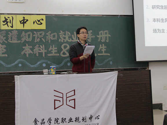 根据《食品学院2015届毕业本科生就业优才计划》,由食品学院职业规划中心举办的毕业生派遣知识和就业首册解读讲座分别于12月2、3日在第三教学楼412室举行。讲座分别邀请了学校学生创业就业中心指导老师张彬彬老师、陈宇栋老师担任主讲人。辅导员田立老师出席并主持两场讲座。