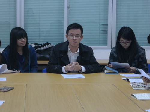 2014年度校、院领导班子民主生活会即将开展,为广泛地收集意见和建议,总结经验教训,更好地开展下一年度工作,12月7日中午,我院特于启林南成长服务中心内党建工作室召开学生意见征集座谈会。座谈会由辅导员李迪主持,食品学院各大组织代表及各年级代表出席本次会议。