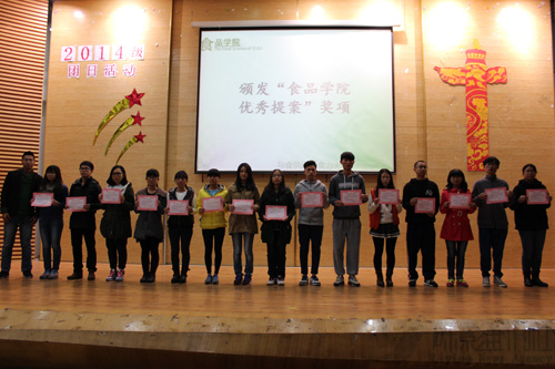 相关链接: 团日系列活动获奖名单: 一等奖:食品质量与安全1班 二等奖:包装工程1班、食品科学与工程6班、食品科学与工程8班 三等奖:生物工程1班、生物工程2班、食品质量与安全4班、食品质量与安全5班、食品科学与工程1班、食品科学与工程4班 优秀奖:食品科学与工程2班、 食品科学与工程3班、食品科学与工程5班、食品科学与工程7班、食品科学与工程9班、食品质量与安全2班、食品质量与安全3班、生物工程3班、包装工程2班 最佳精神风貌奖:(班级风采展示优胜班级) 包装工程1班、生物工程3班 “我为院庆添花加彩”贺卡设计获奖名单: 一等奖:食品科学与工程6班① 二等奖:食品科学与工程4班、食品科学与工程8班 三等奖:包装工程1班、包装工程2班、食品质量与安全1班、食品质量与安全5班、食品科学与工程6班②