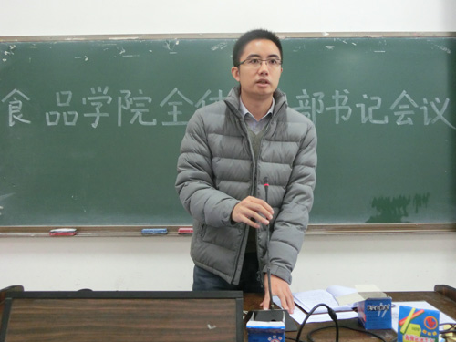 本次团支书会议主要内容为发布关于选举共青团华南农业大学第二十七次代表大会代表的通知。田立老师在讲话中表示,这次共青团华南农业大学第二十七次代表大会是全校的一件大事,作为一名团员要重视本次团代会,积极参与到团员代表的选举中去。