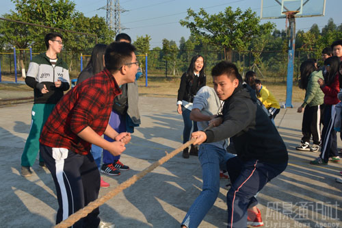 本次趣味运动会设有三个比赛项目:七人八足、跳大绳和拔河,其中食品科学与工程4班与5班之间的拔河比赛吸引了众多同学的眼球。拔河比赛采用三局两胜制,食品科学与工程4班(下称“食工4班”)拔得头筹。食品科学与工程5班(下称“食工5班”)立即根据比赛形势调正队形,制定战术,最终连胜两局,获得胜利。比赛结束之后,食工5班的刘杰朗上前拥抱食工4班的唐良益,充分展现“友谊第一,比赛第二”的运动精神。